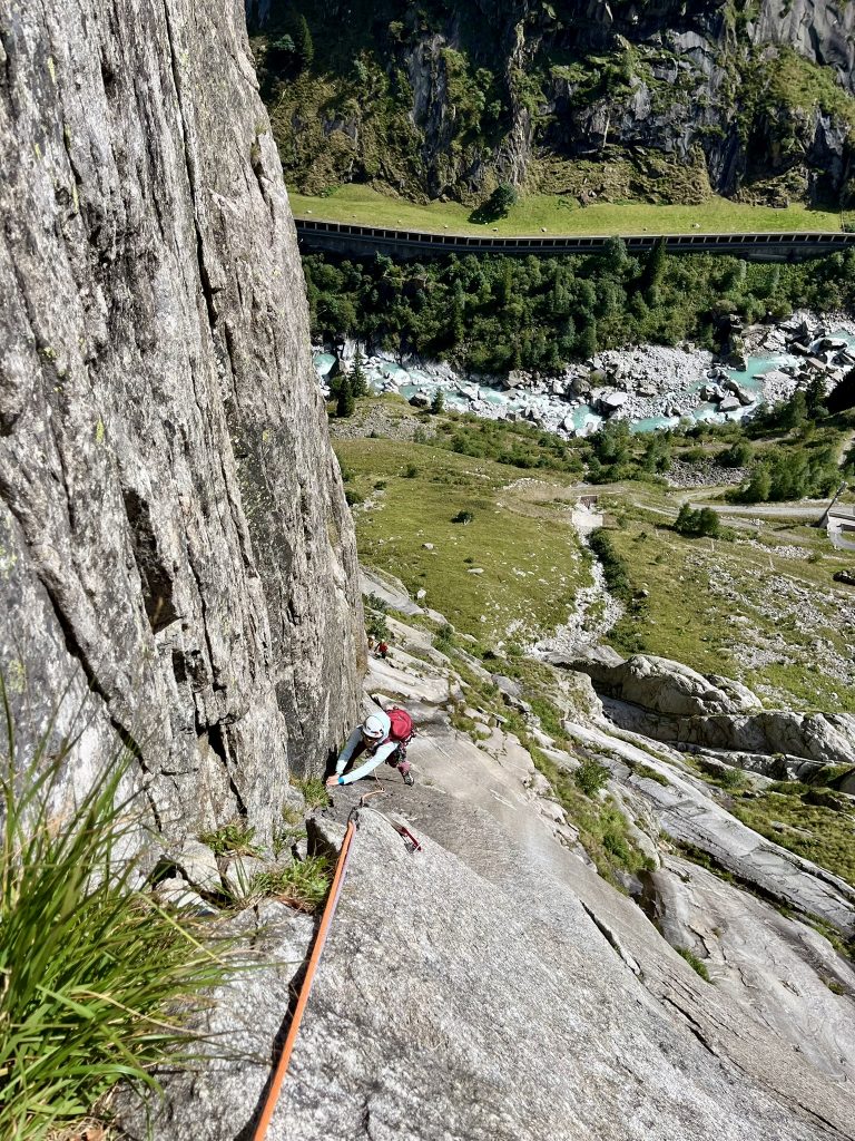 第一段和第二段路线清晰简单,刚好适合热身;第三段就到了难点,看似slab的线路,却需要侧拉和夹角的动作去持续输出,路线潮湿的时候心里压力还是很大的;第四段的起步到第二把快挂是难点,但回想起来也只有一步是6a难点,需要相信自己把全身重量全部压在一个小脚点上站起来放快挂然后挂绳;后面几段感觉没有特别需要的技术难点,一路手点脚点都很舒服,即使有部分潮湿的路段。